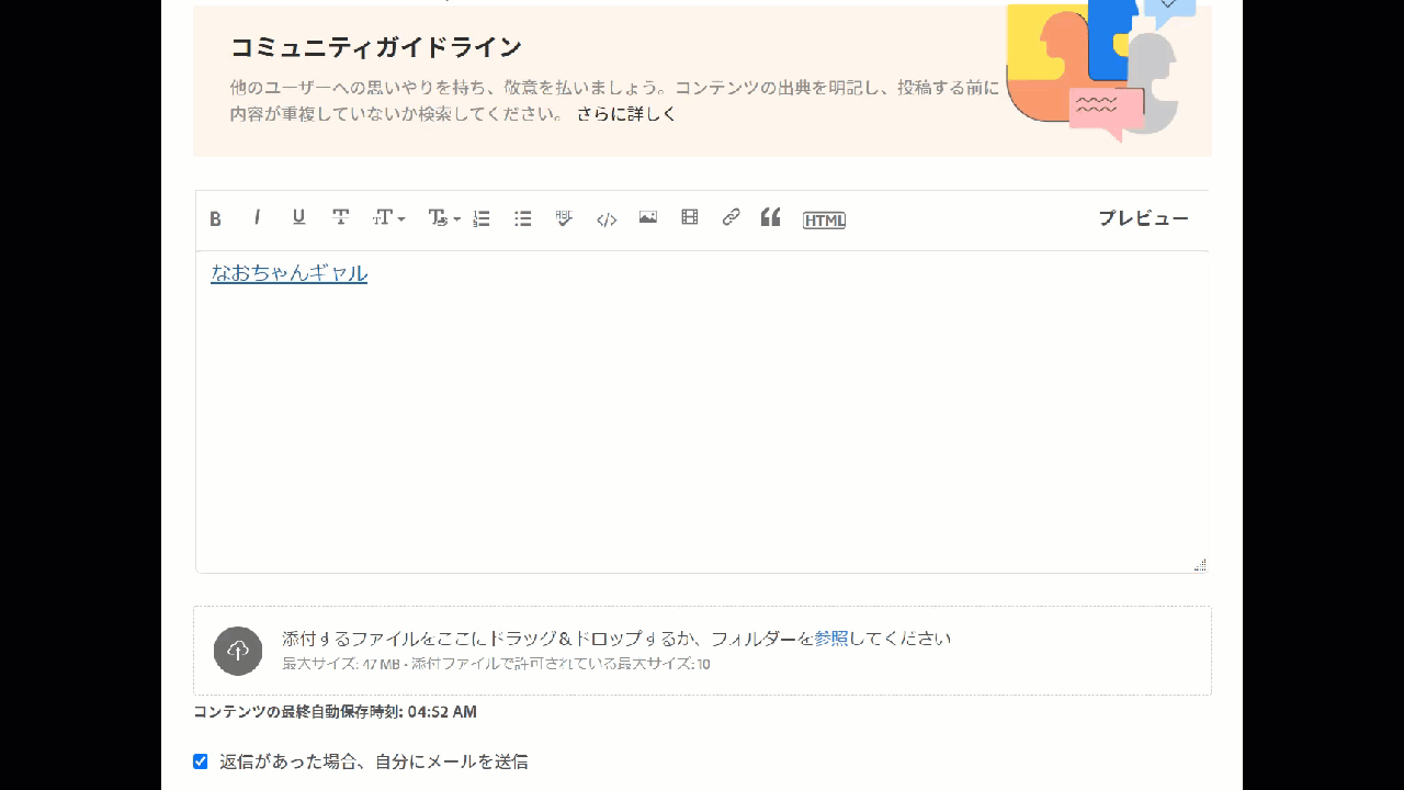 ※例えば、このページのユーザー名をコピペすると、リンクがつきます。
