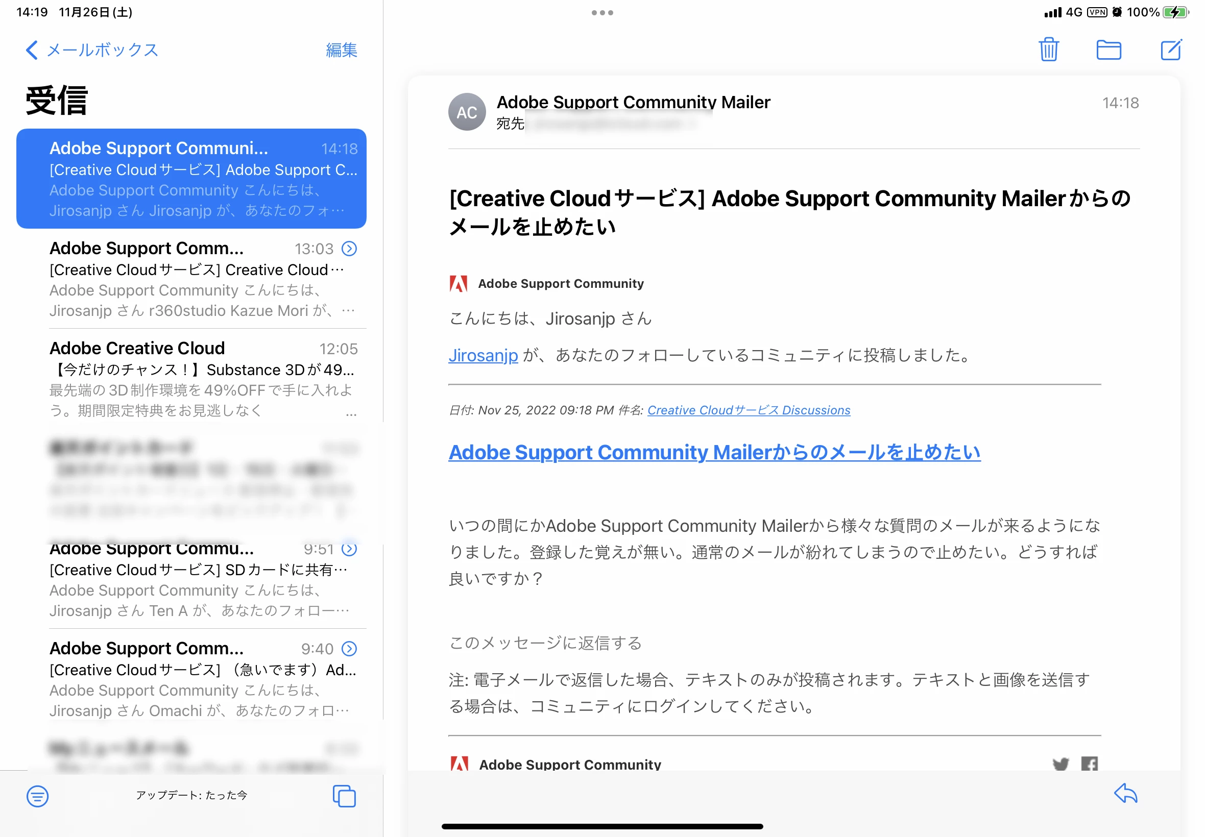 Adobe Support Community Mailerからのメールを止めたい