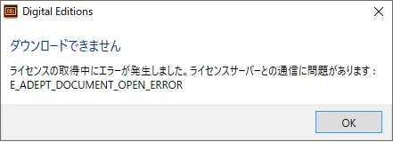 adobe digital editions でのE_ADEPT_DOCUMENT_OPEN_ERROR エラーの件