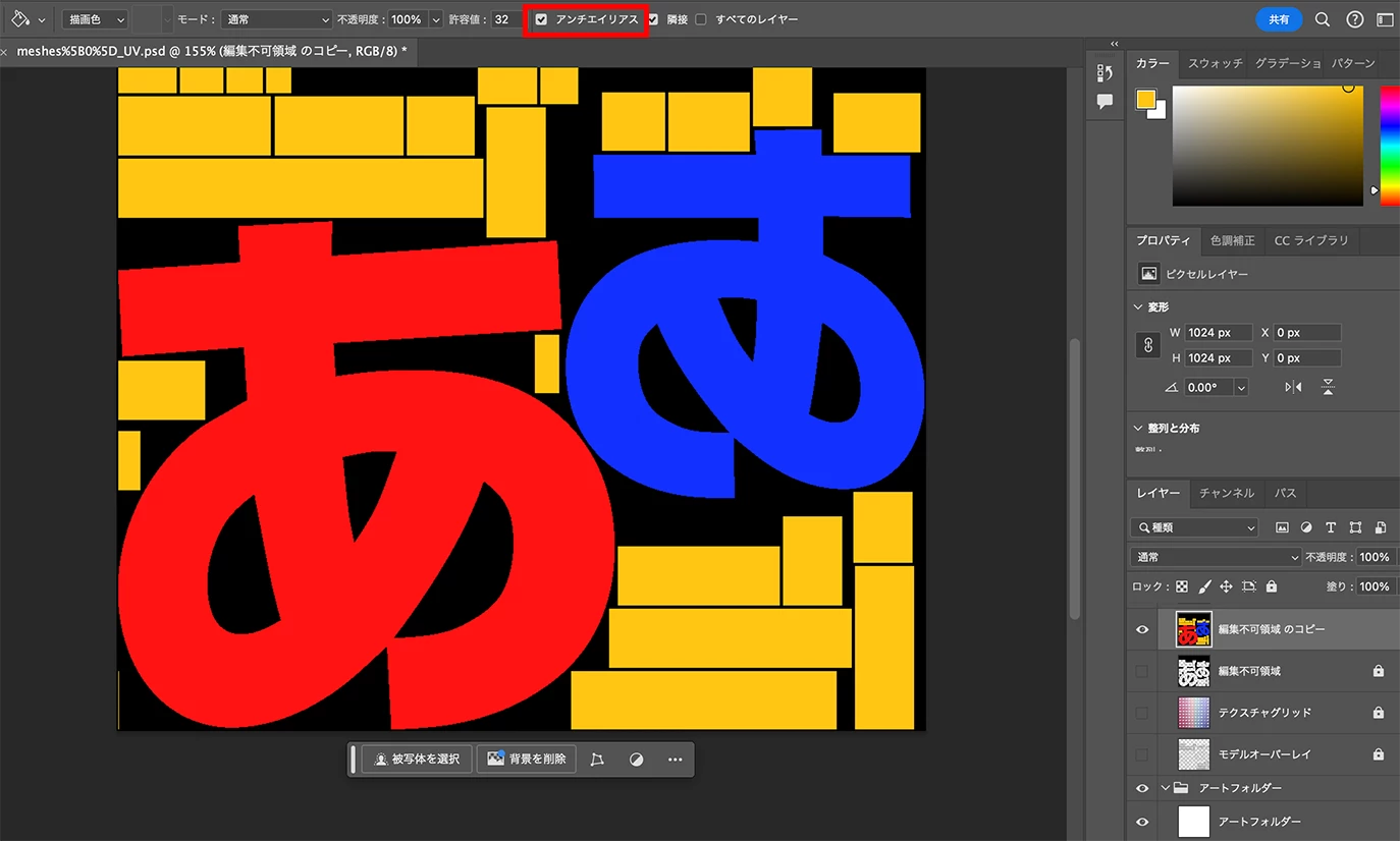 テクスチャのピクセルごとの境目がぼやける。
