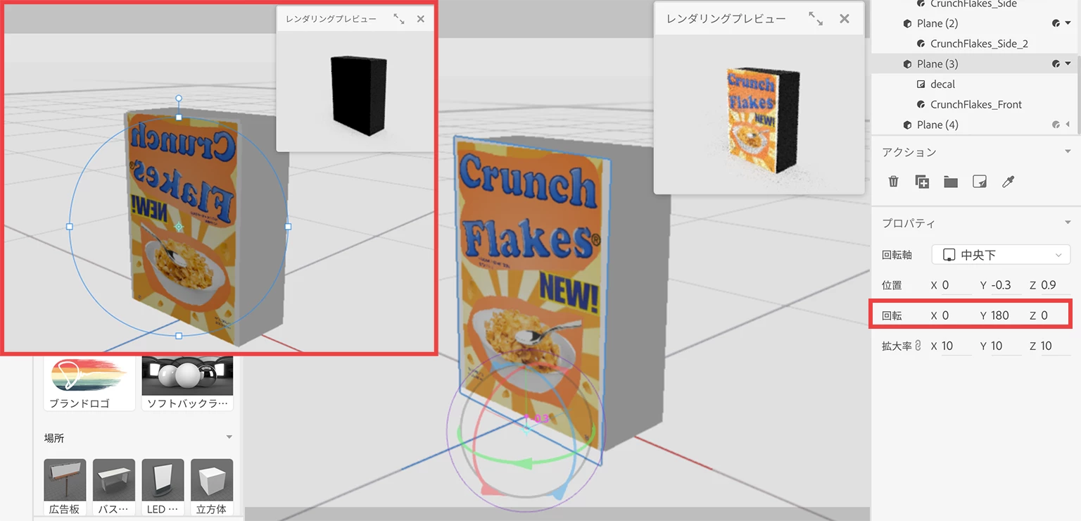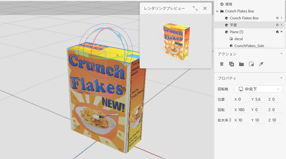 例えばアセットパック内の「立方体のボックス」という紙の箱のモデルに
