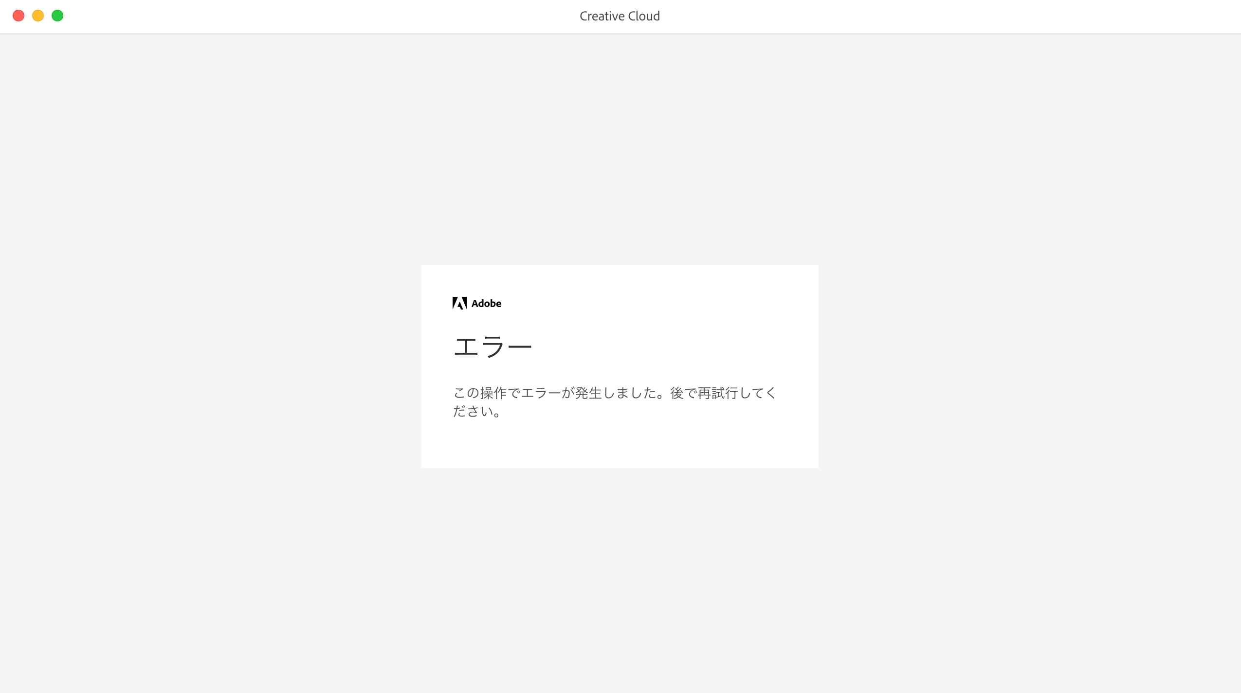「この操作でエラーが発生しました。後で再試行してください。」