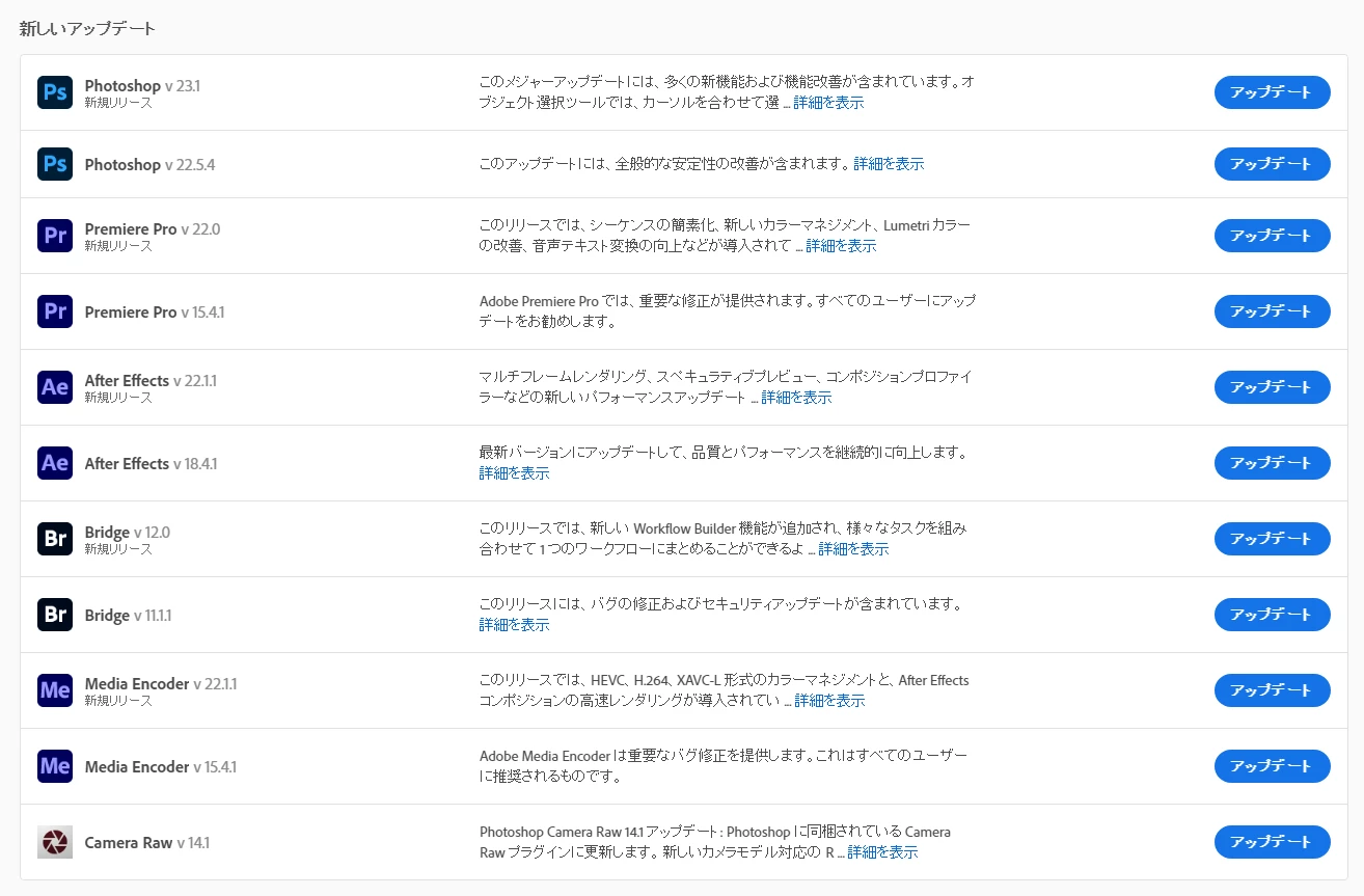 ここ数年は10月から11月にかけて(イベントであるAdobe MAXにあわせて)、各種アプリケーションのメジャーアップデートが行われます 。