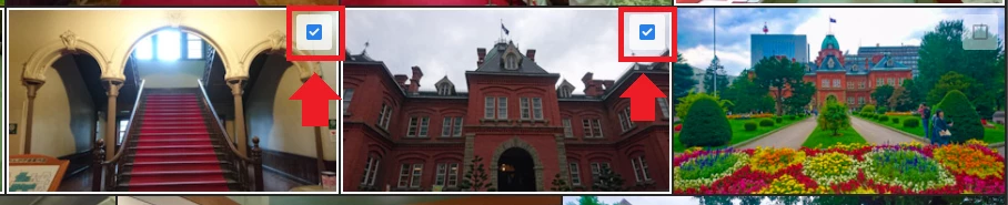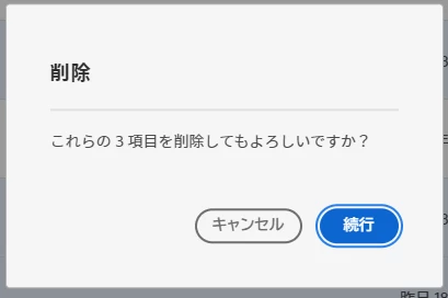 また、やはりマウスカーソルを合わせると左上にチェックボックスが表示されるので、削除したいものすべてにチェックを入れたあと、画面右上に表示される〔削除〕をクリックします。