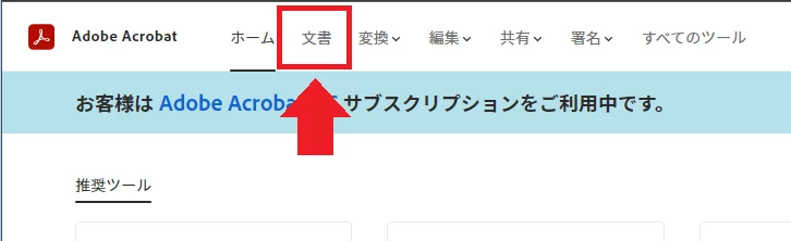 2. 画面上部のメニュー項目から〔文書〕をクリックします。