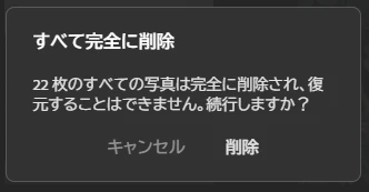 6. 以下のメッセージが表示されるので、問題なければ〔アルバムを削除〕をクリックします。