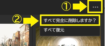 8. 画面右上にある三点リーダーをクリックし、さらに〔すべて完全に削除しますか?〕をクリックします。