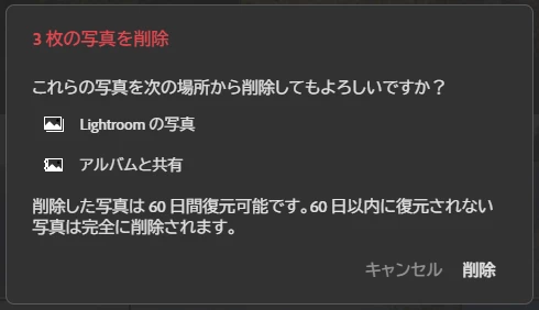 手順2(Lightroomの写真ストレージからの削除)