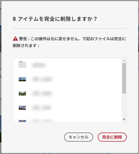 4. 下記のメッセージが表示されるので、問題なければ〔完全に削除〕をクリックします。