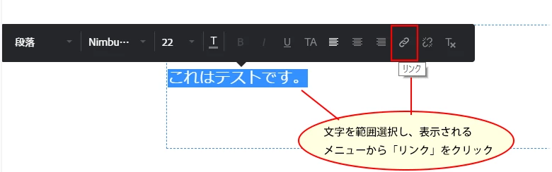 テキストにリンクを貼る場合の方法を説明します。