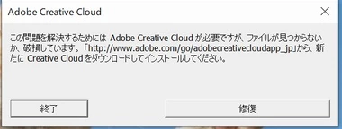 少し前から起動時に現れます。その前はCreative Cloudが何かのエラーが起こっていて、