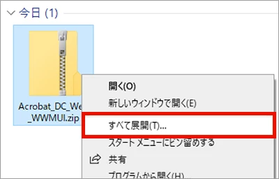 3. ダウンロードしたファイルを右クリックし、「すべて展開」を選択して実行します。