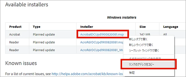 5-1. ページ内の「AcrobatDCUpd1900820081.msp」を右クリック、リンクをコピーします。