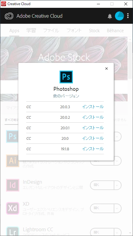 バージョンの記載はないため、今回Creative Cloudデスクトップアプリからダウンロードできなくなった、
