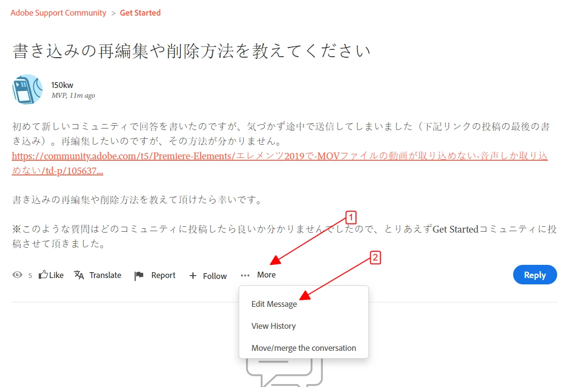 初めて新しいコミュニティで回答を書いたのですが、気づかず途中で送信してしまいました(下記リンクの投稿の最後の書き込み)。再編集したいのですが、その方法が分かりません。