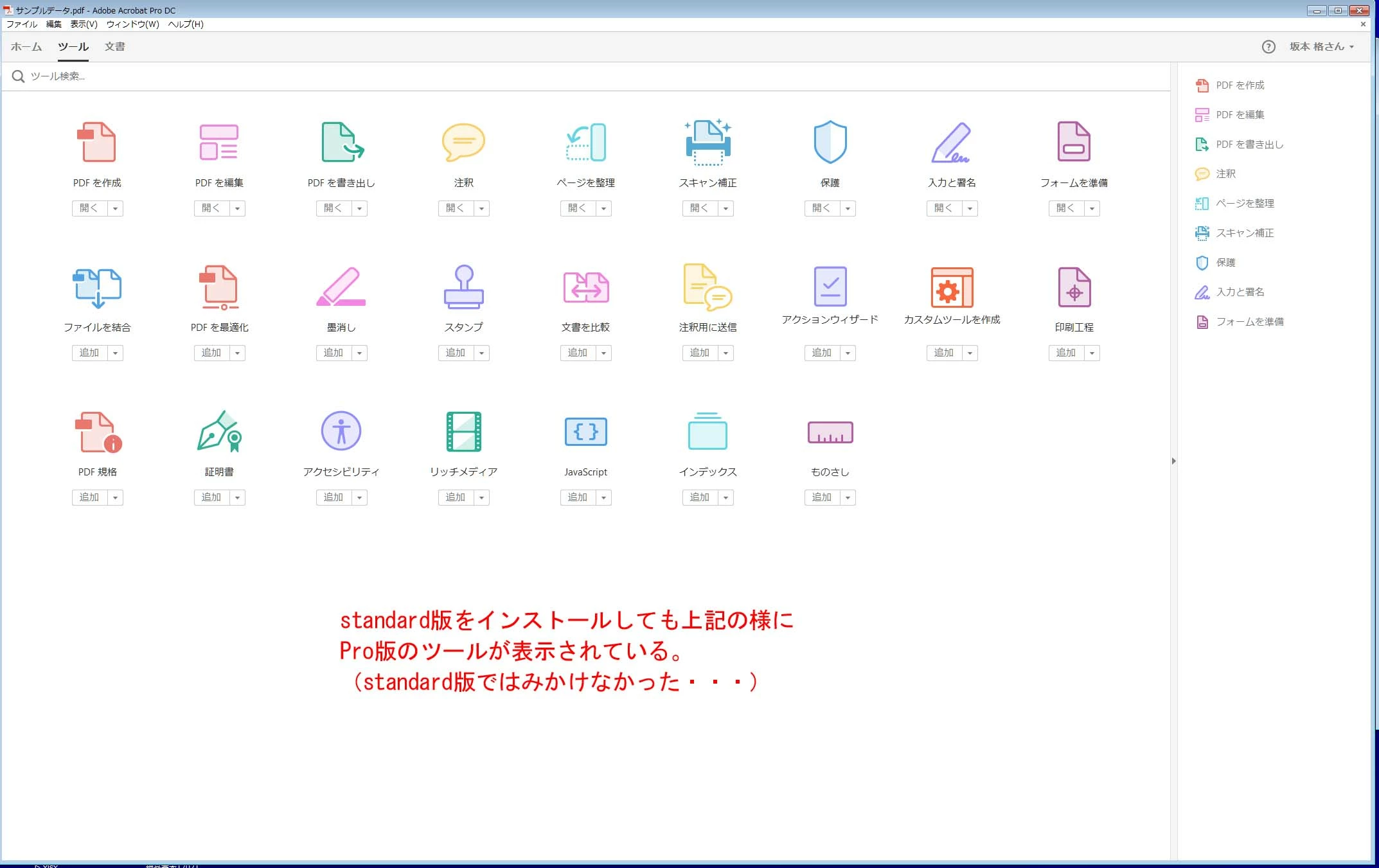 acrobat proDC体験版の試用期間終了後、元からあるstandard版が使えなくなった