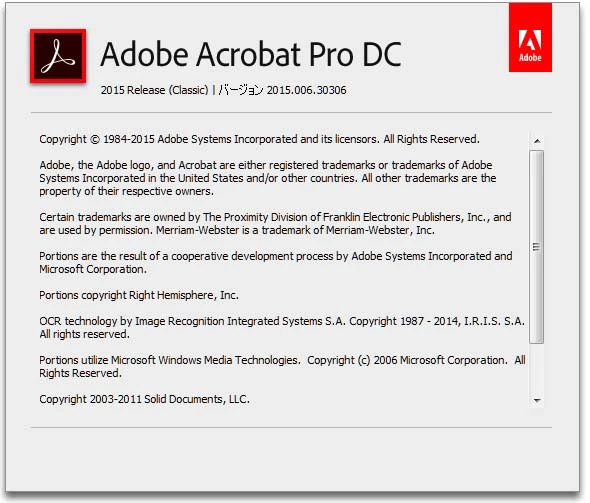 widows7にて、acrobat DC standard版永続ライセンス(現在のバージョン;2015release(classic)1 ver.2015.006.30306)を2015年12月に購入し使用して来ました(corei7,32M, DELL VOSTROseries,HD500G(残り100G)。