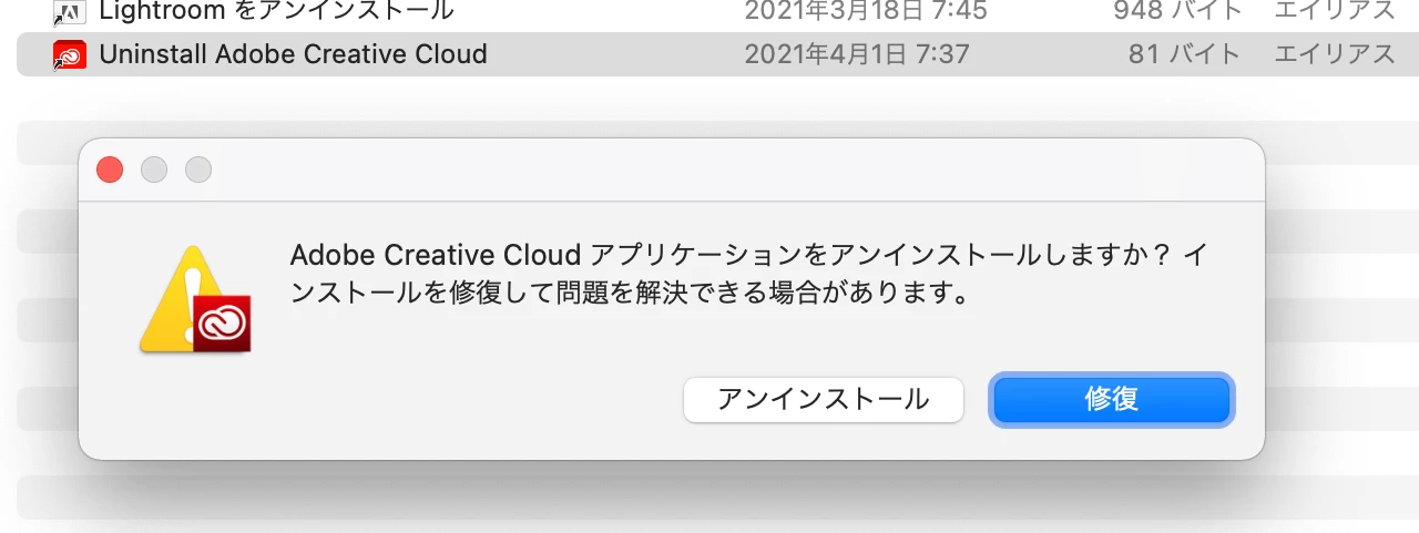 画像を修復実行すると"Creative Cloud ディスクトップをインストールします”と