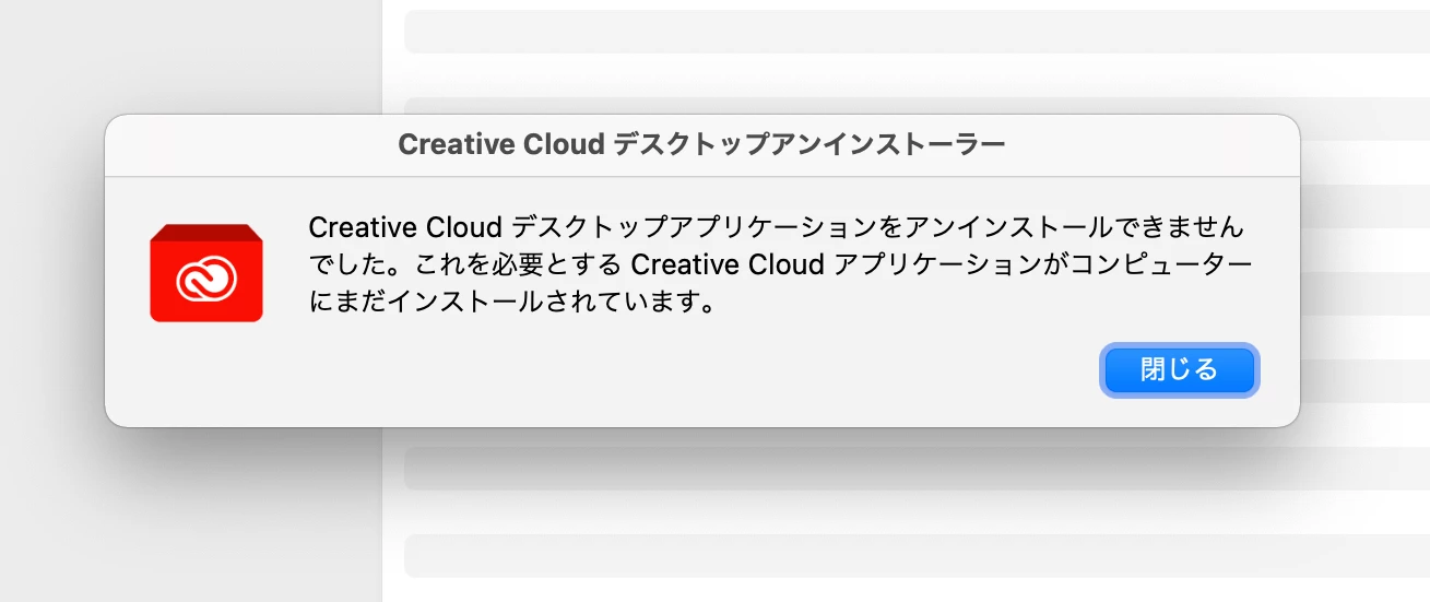 Creative Cloudが アンインストールできない。アンインストールアイコンが反応しない。