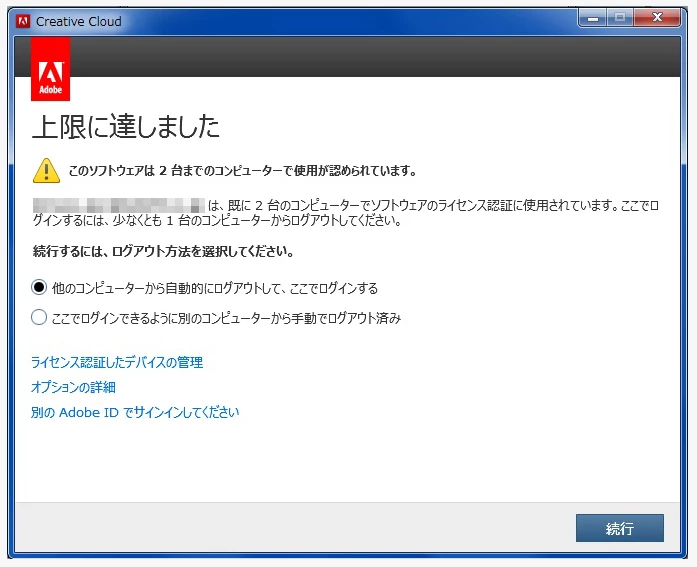 Creative Cloud の「ライセンス認証の制限値に到達しました」または「ログインに失敗しました」エラー