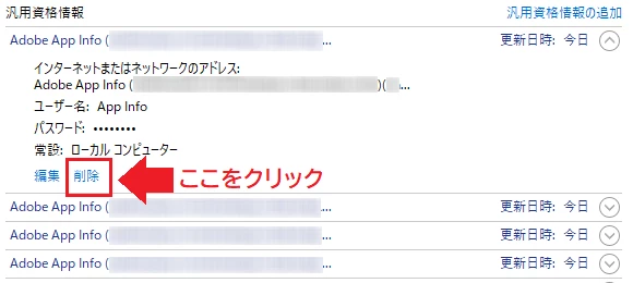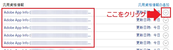 ⑩「Adobe User」「Adobe App」で始まるすべての証明書を削除します。