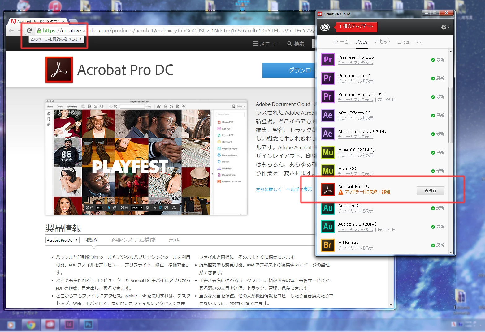 Photoshop cc 2015.0 Bridge CC のアップデートに失敗「ファイルを抽出できない。」とのエラーメッセージが表示される。