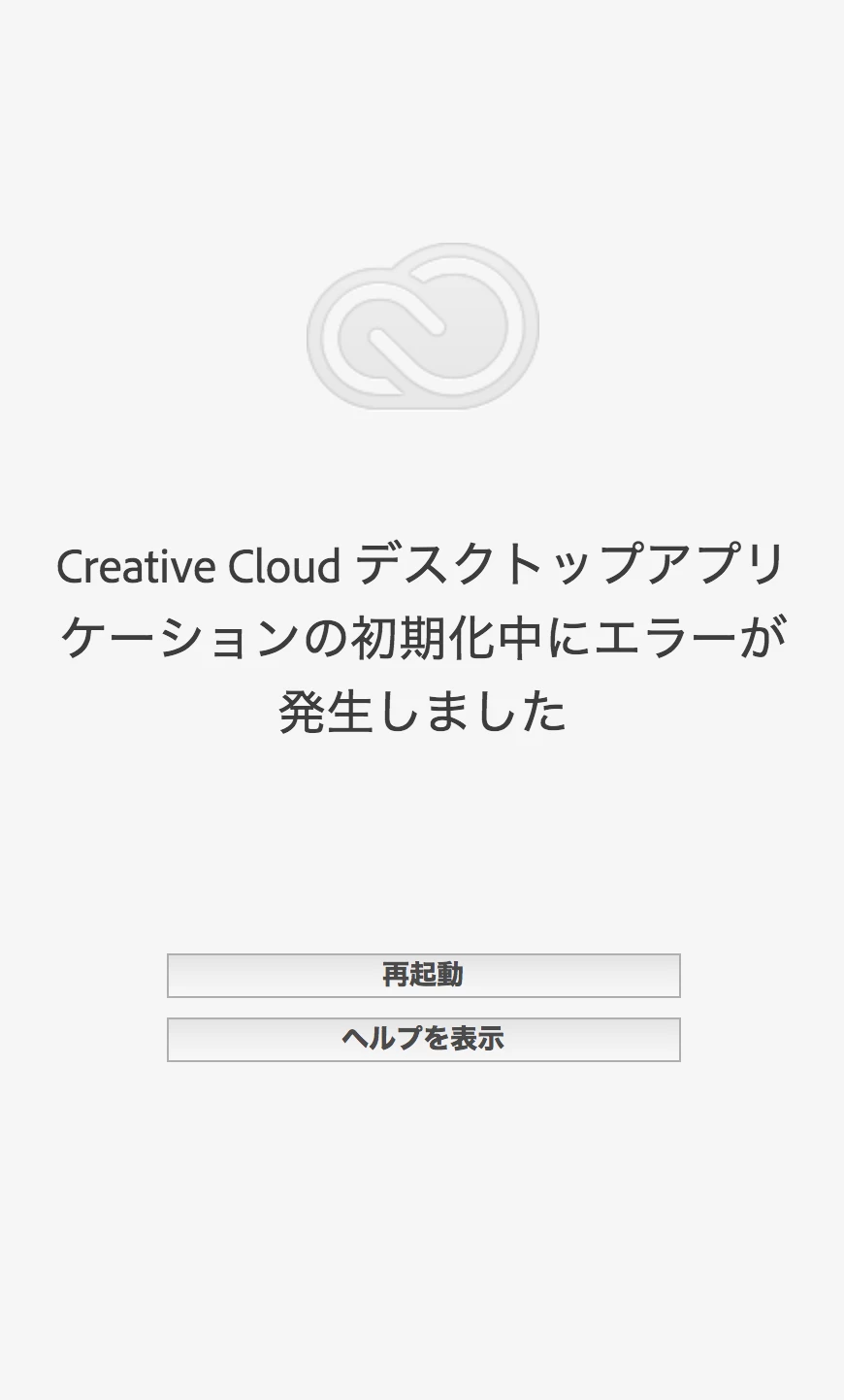 CreativeCloudのデスクトップアプリケーションの初期化中にエラーが発生しました