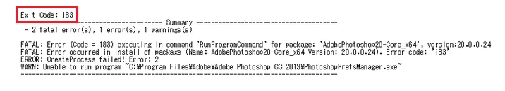 ExitCode:183が出てPhotoshop 20.0がインストールできない