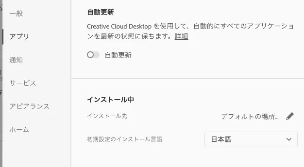 TTAKAGI32359076sfgxParticipantForum|Forum|1 year agoNovember 27, 2024質問Macでadobeをインストールすると書類フォルダに入ってしまうForum|Forum|1 year agoNovember 27, 2024返信数 2.266 ビューMacでadobeをインストールすると書類フォルダになってしまいます。Clreative Cloud→環境設定→アプリ でインストール先を指定したいのですが、どこを指定すれば良いかわかりません。よろしくお願いします。CC に関する FAQCreative Cloud