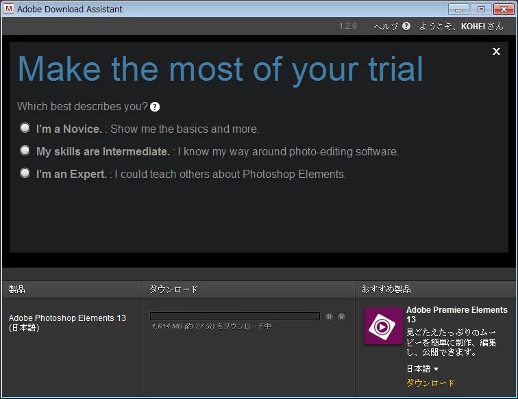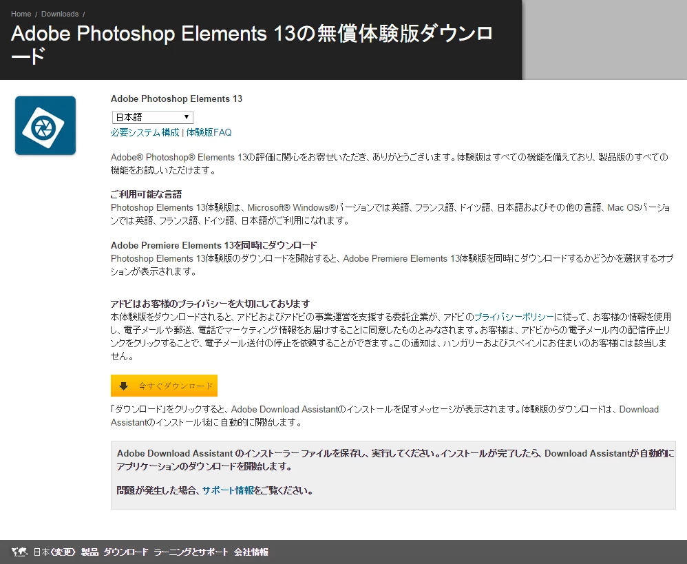 ※PhotoshopElements13 の体験版も上記ページからダウンロード可能です。