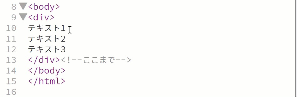 shift+↓で<!--ここまで-->のコメントアウトまで選択