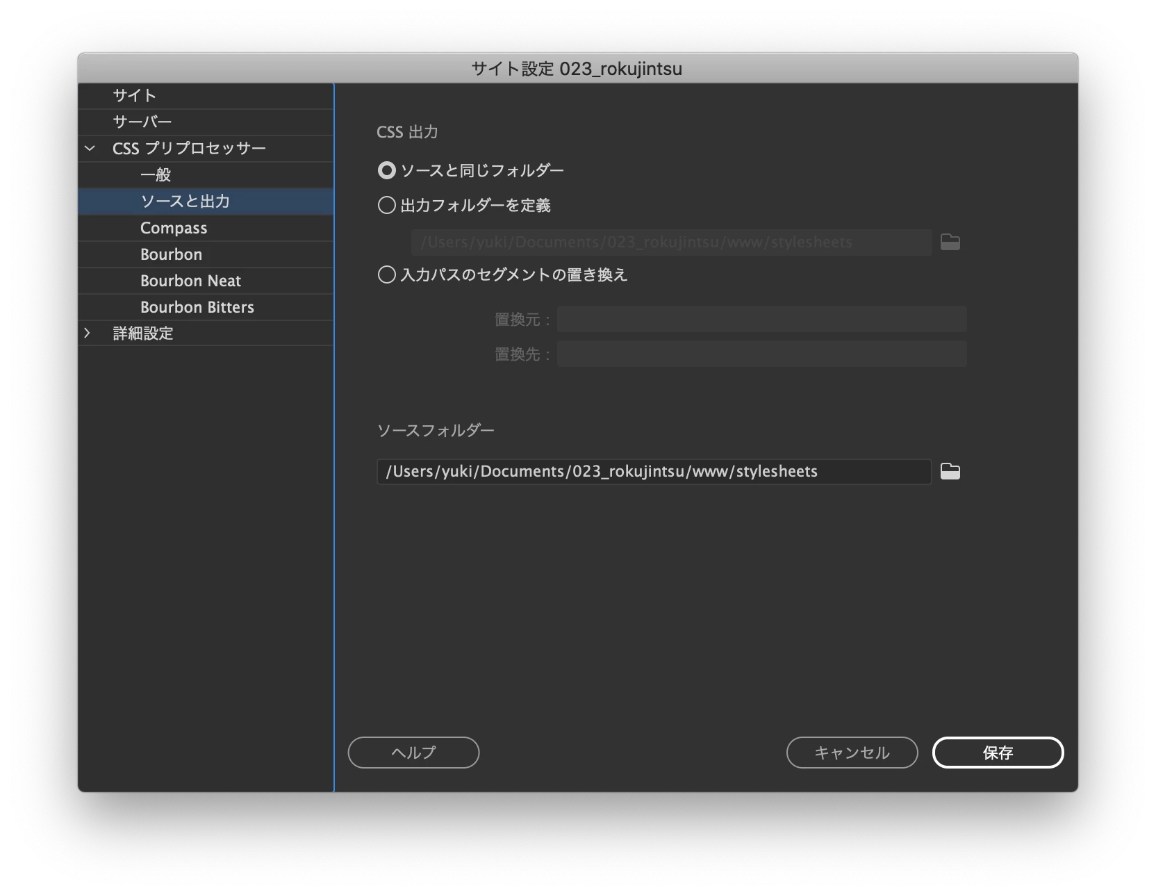 コンパイルしたCSSファイルが「ソースと同じフォルダ」に出力されない。
