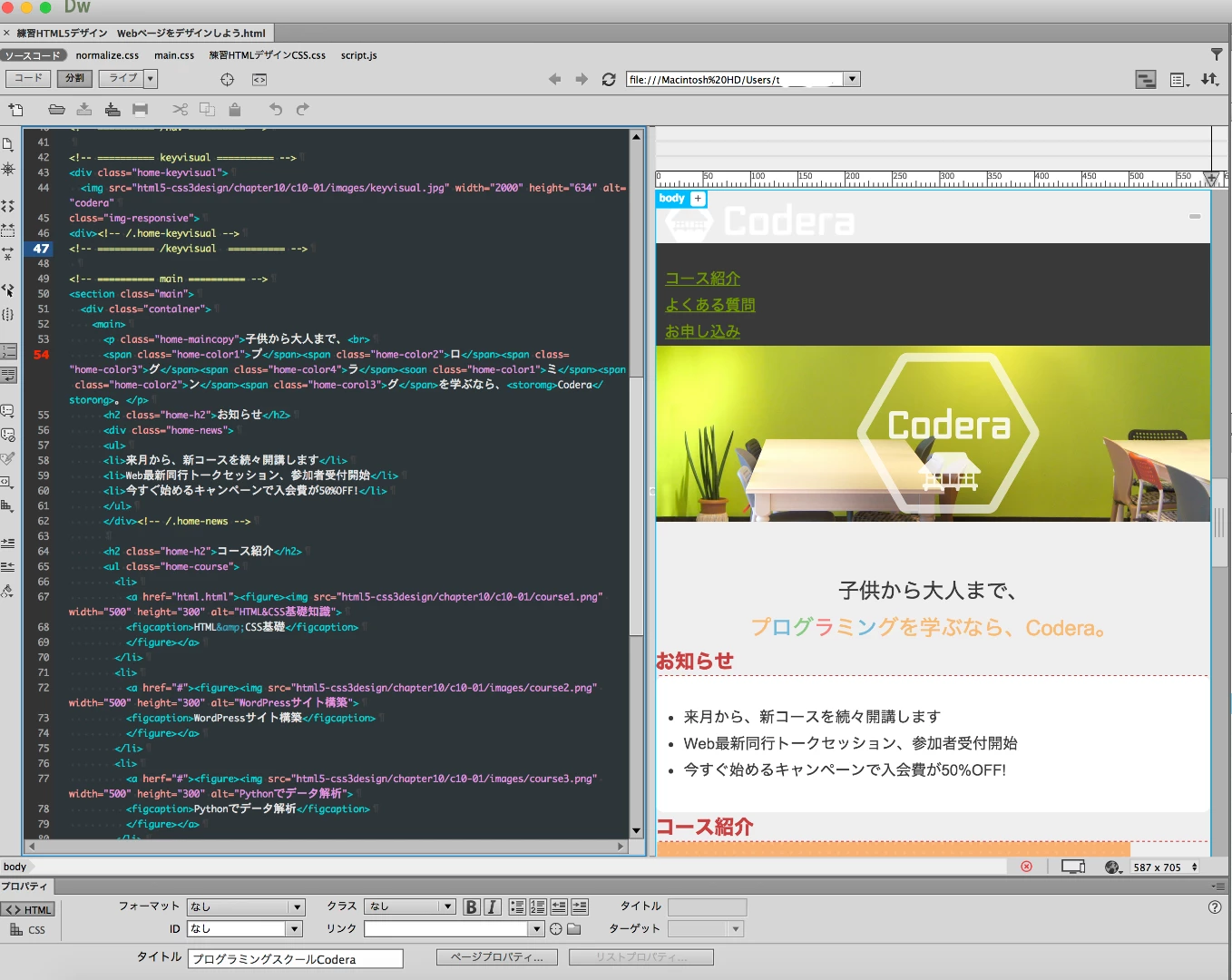 また、この書籍自体は特にDreamweaverのユーザ向けというわけではないようなので、Dreamweaverでの操作についても事前にオンラインチュートリアルなどで慣れておくことをお勧めします。