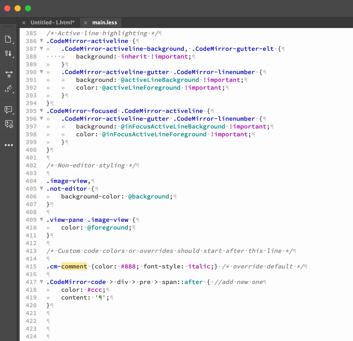 をチェックすることで現れる「¶」の色を変更したいです。