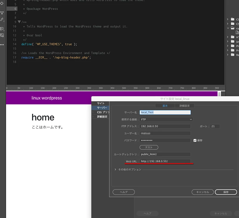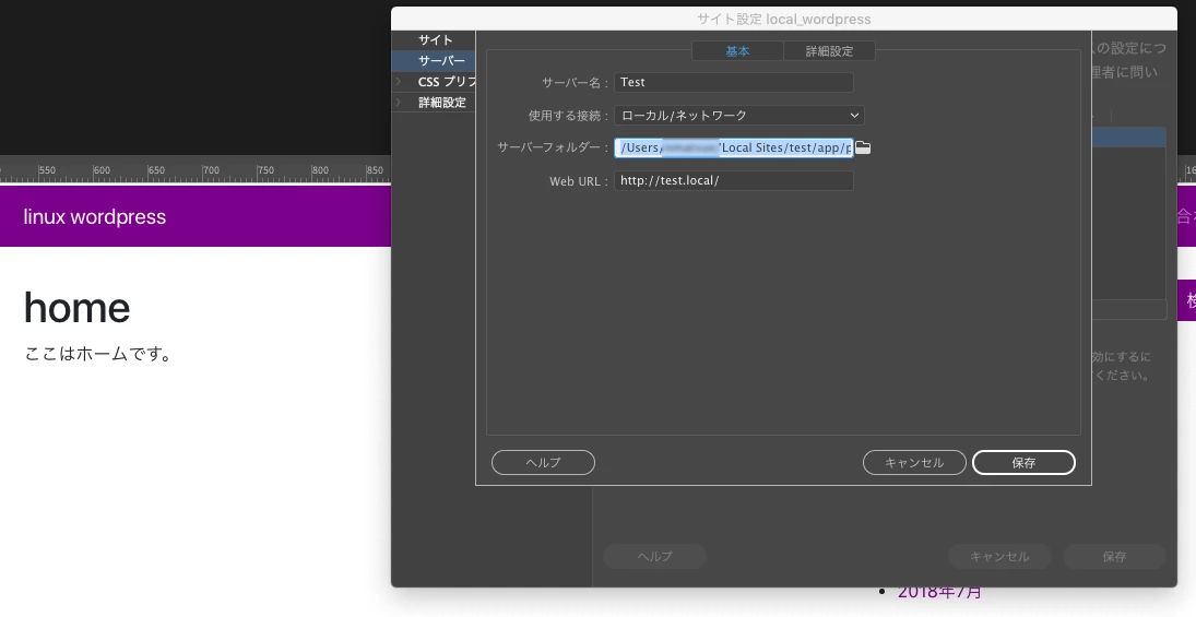 Wordpress上の既存サイトをlocal by flywheelを使ってローカル環境にインポートし、Dreamweaverでサイト定義後、
