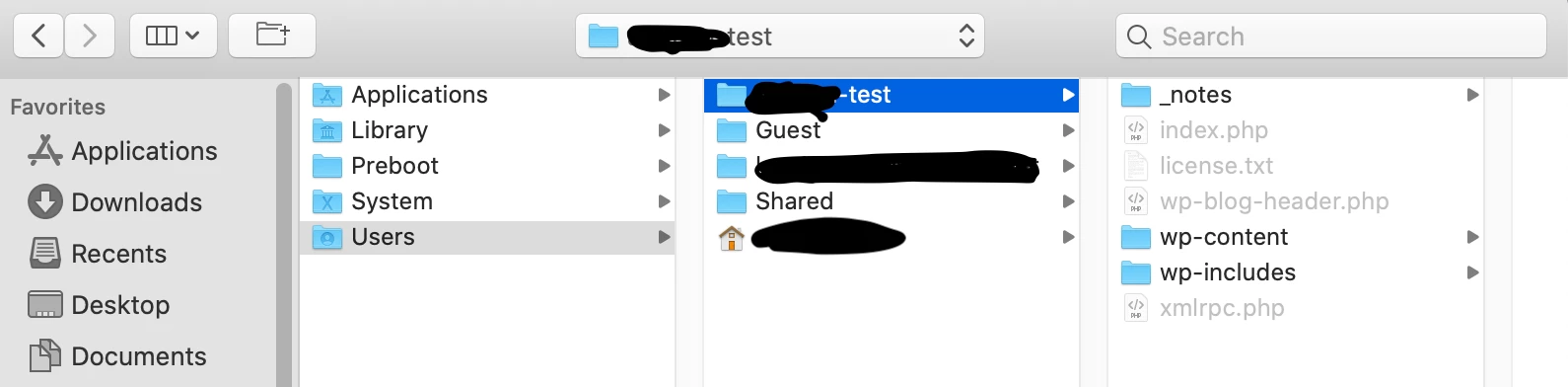 ・ローカルルートフォルダはMac内蔵のHDのUserフォルダ内に新規作成し、サーバーフォルダとは別々にしていること
