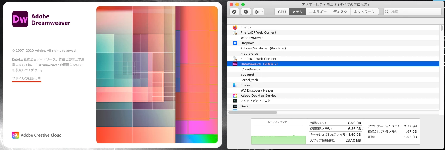 早速macOSをセーフブートしてみましたらDreamweaver起動しました!