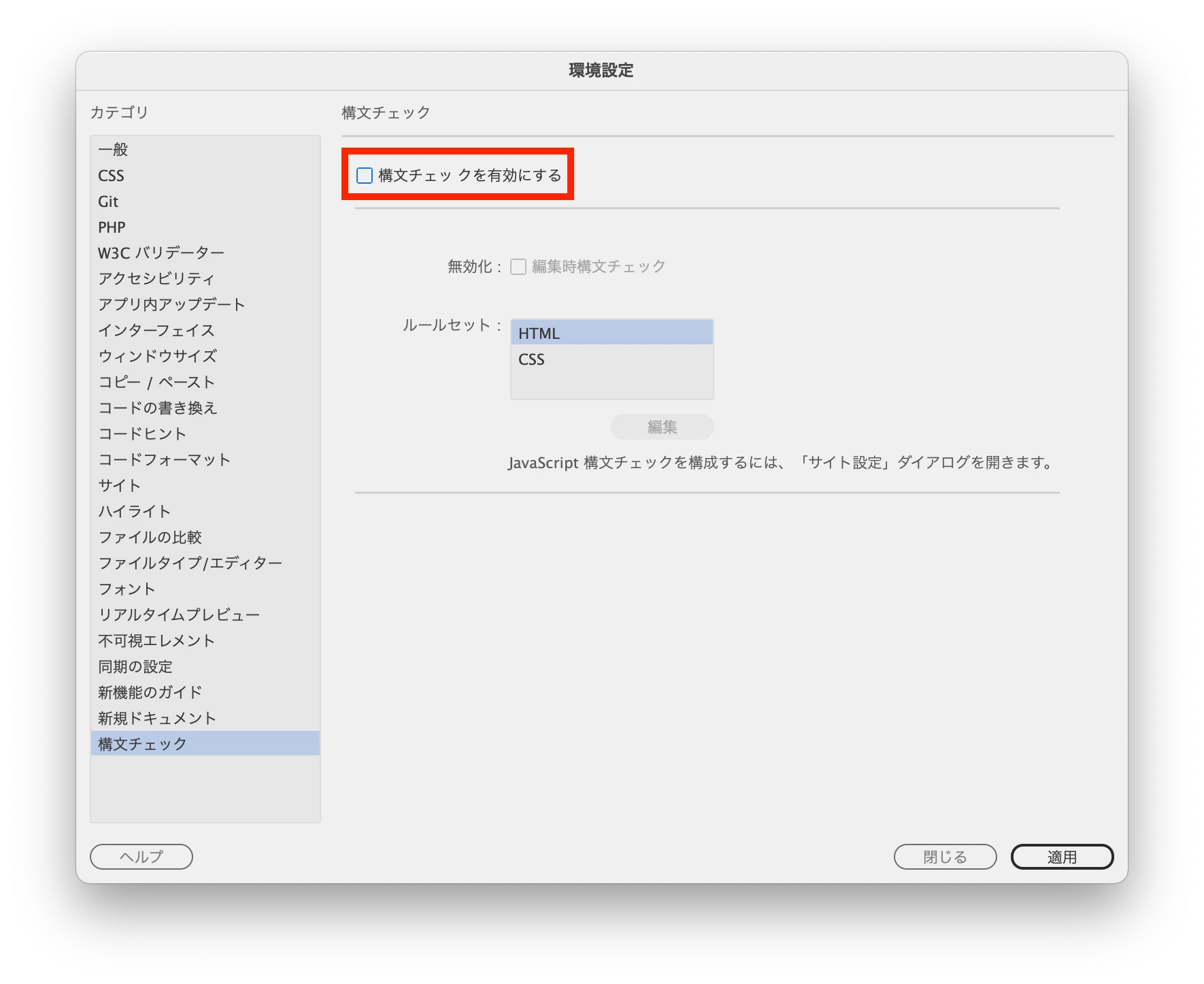 しかしながらエラーを返す不具合が起きるため、エラーを出さないために環境設定のLinting(構文チェック)のチェックマークを外してみてください。