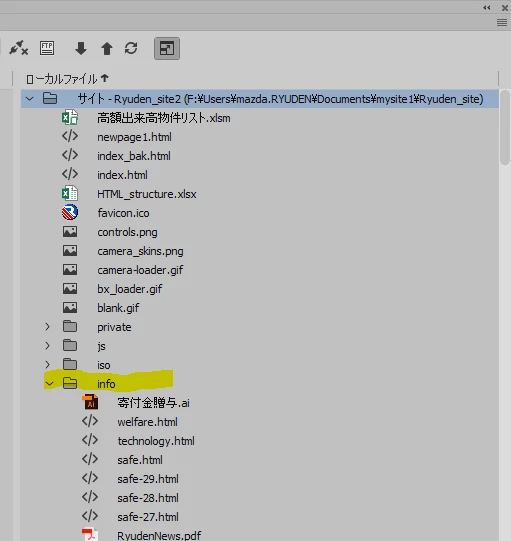気になるのは、ユーザー名に「mazda.RYUDEN」のように間にピリオドが存在しているように見受けられるのですが、Dreamweaverはパスの情報に記号や全角文字が存在すると誤動作を起こす場合があります。
