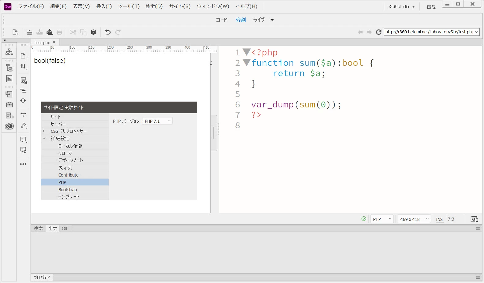 DreamweaverのPHPバージョンは7.1にしています。