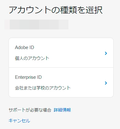 AdobeにEnterprise IDでログインしようとするとそもそも入力を拒絶され、普通のAdobe ID入力画面に強制的に戻されます