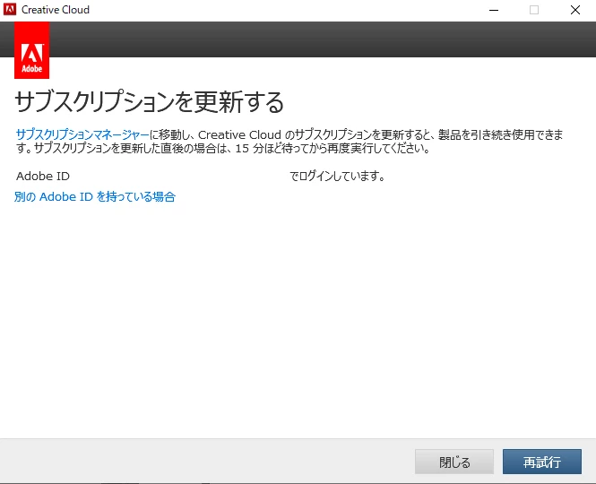 FireworksCS6を起動しようとしますと、サブスクリプションを更新するの画面が出て起動しなくなりました。
