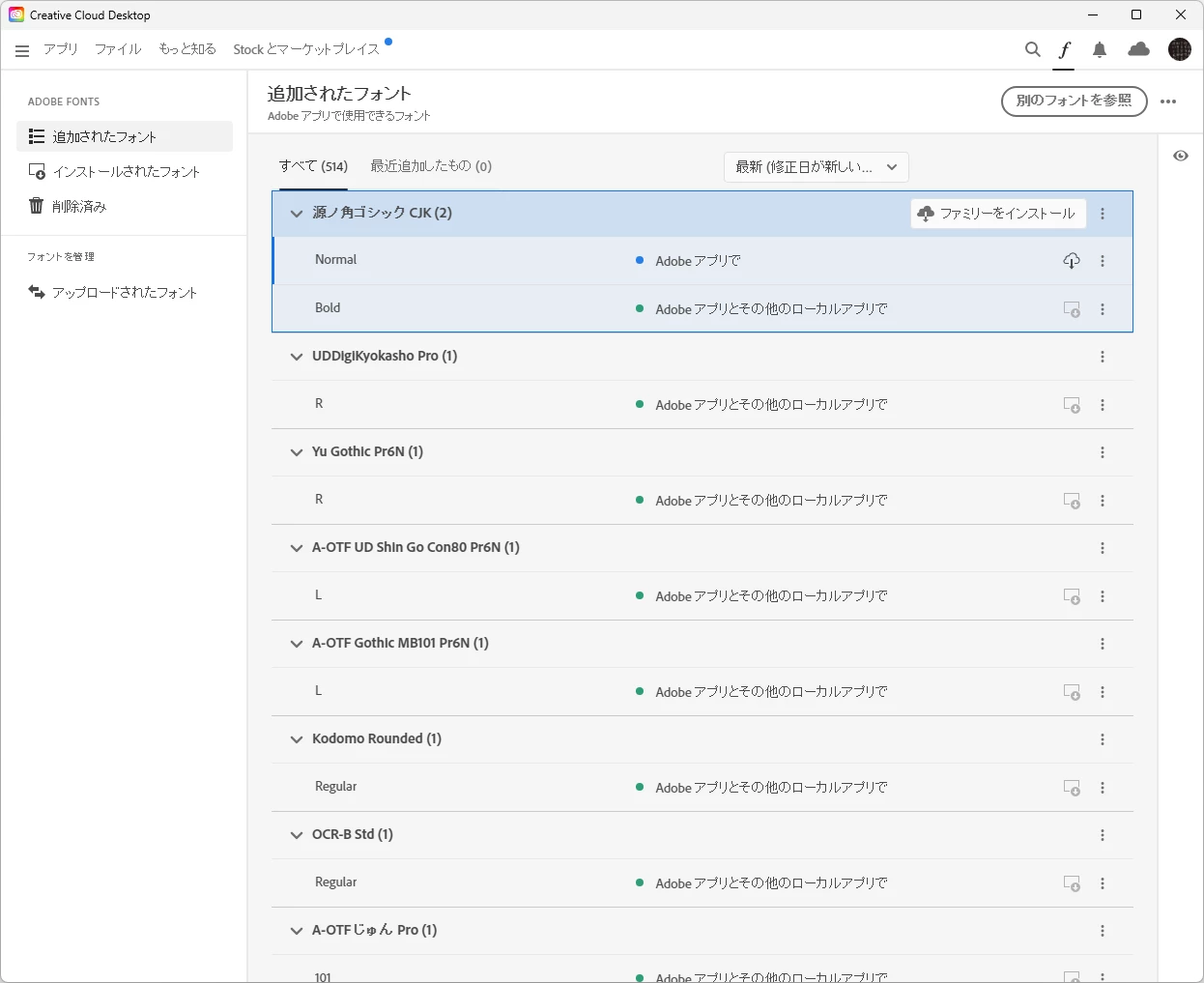 ただ新規の場合はAdobe Fontsのサイトを通るというのは以前から同じですので、まずはそこからの追加処理を行ってみてください。
