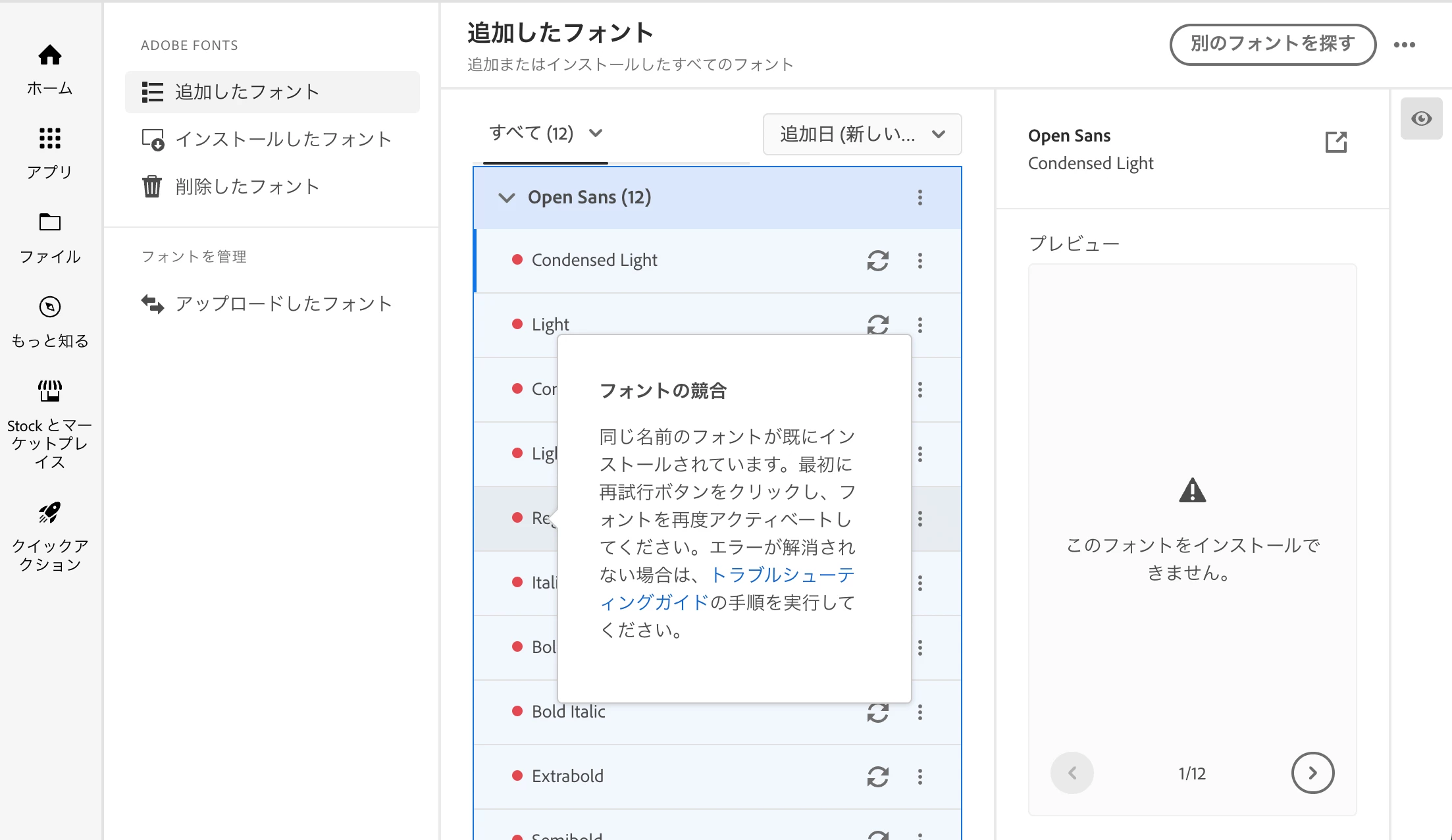Adobe Fonts でアクティベートしたフォントが追加されておらず困っています。