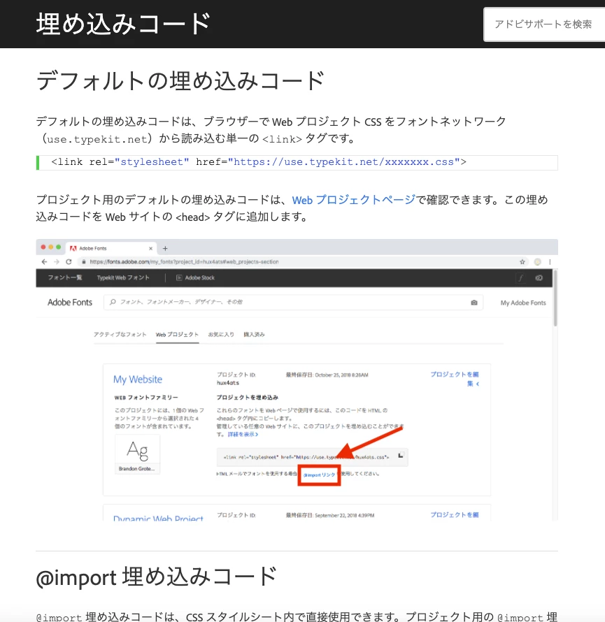 Adobeフォントの@import 埋め込みコード