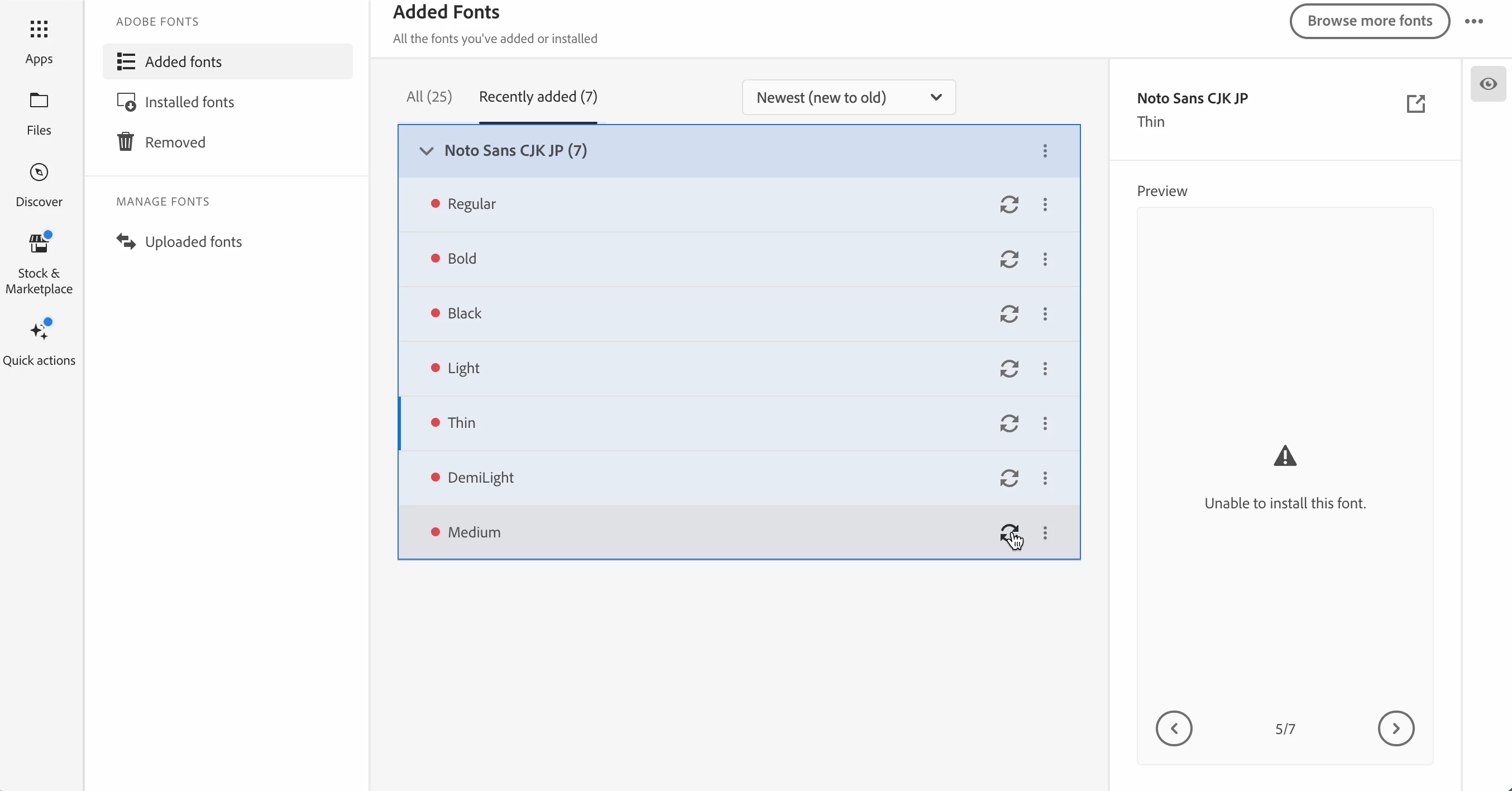 他のフォントは「フォントファミリーに追加」で問題なく追加できたのですが、Noto Sans CJK JPのみエラーになってしまい、何度削除&追加を繰り返しても、うまく追加ができません。