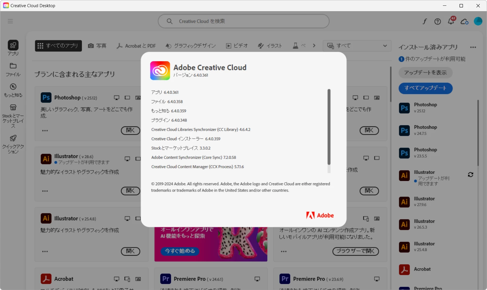 当方のOSはwindows10で、AdobeCCコンプリートプランを契約しております。