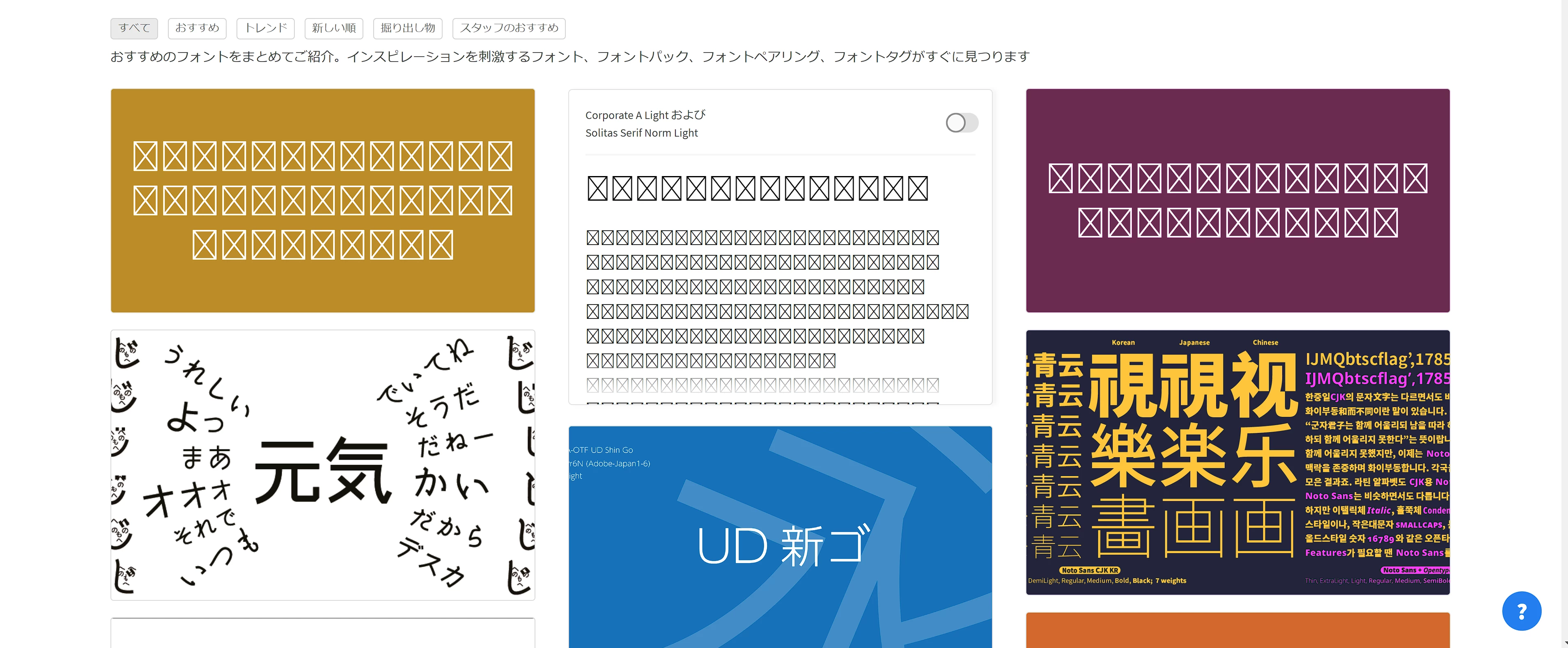 また、ブラウザー表示はWeb経由でサブセット化されたフォントがダウンロードされることで表示されます。ネットワーク回線の速度等も影響を受けますので、そういった点も確認して下さい。