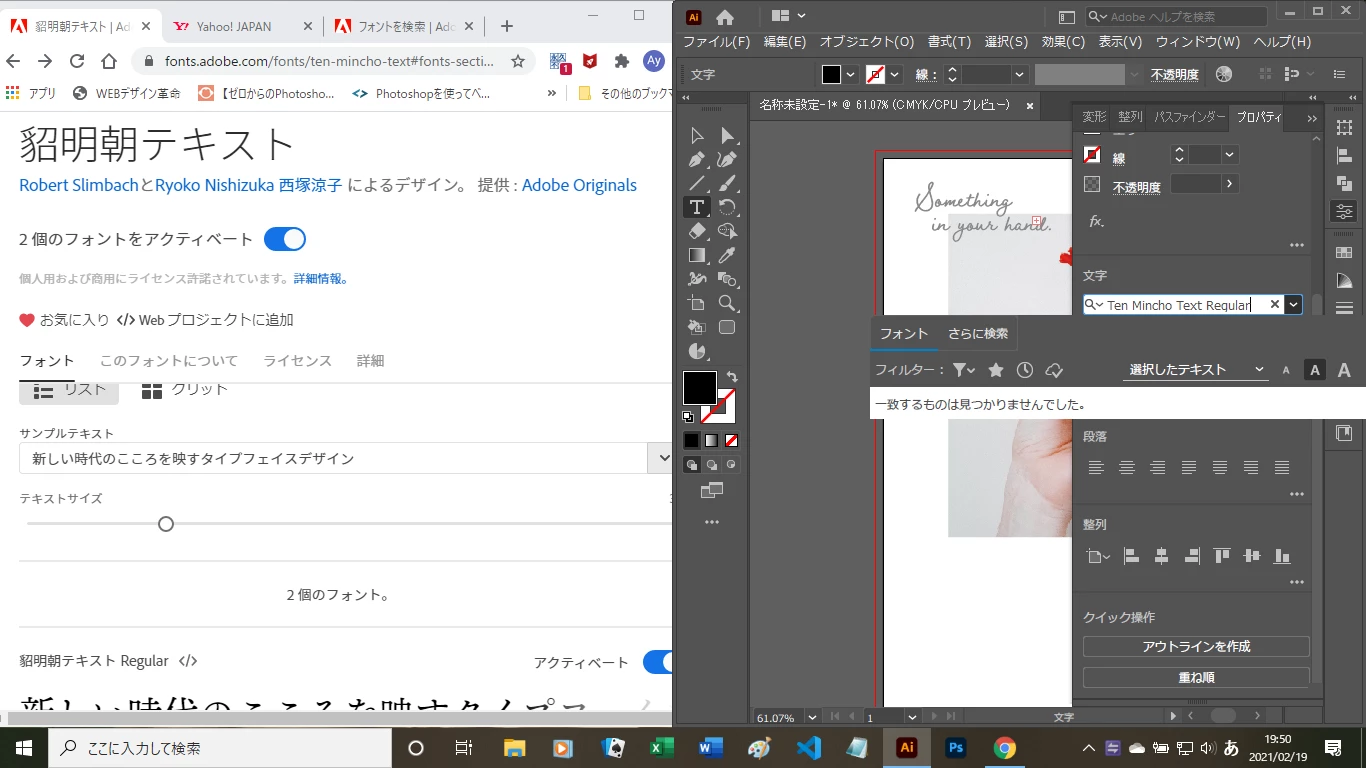 illustorator2021で使おうと思うのですが、画像の通りアクティベートはされているのに、フォントを検索しても出てきません。