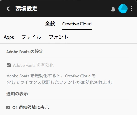 突然adobe fontが使えなくなり、デスクトップアプリの環境設定を確認すると「Adobe Fontsを有効化」にはチェックが入っているのですが、表示色がグレーでチェックボックスを外すこともできず、反応しません。原因、および対処法をご存知の方はいらっしゃいますでしょうか。